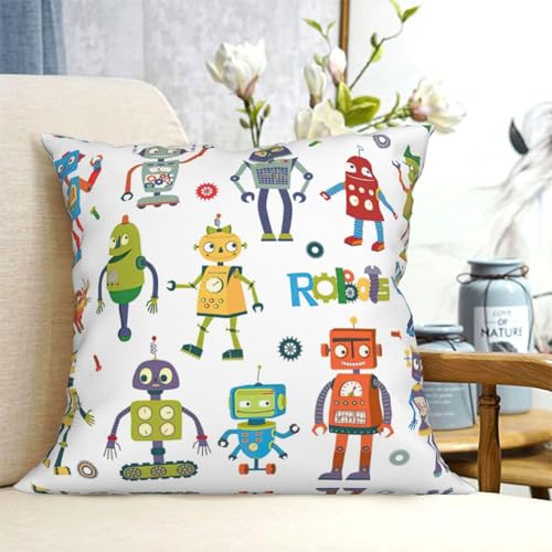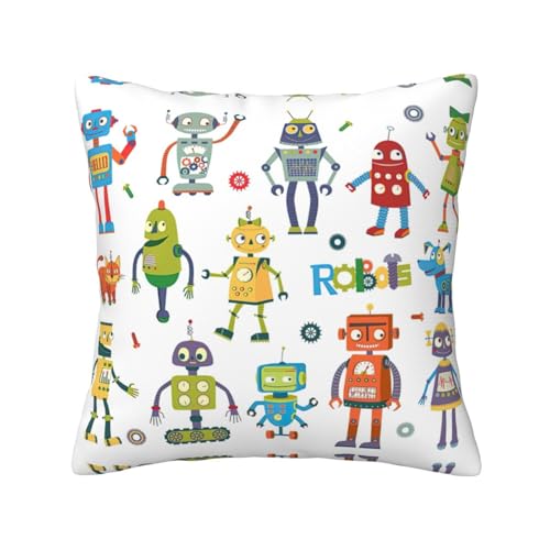 Design-Highlights: Unsere niedlichen Cartoon-Roboter-Kissenbezüge verfügen über hochwertigen, atmungsaktiven Stoff, der Komfort und Weichheit gewährleistet. Die versteckte Reißverschluss-Öffnung ermöglicht ein nahtloses Einsetzen und Ablösen des Kisseneinsatzes, ohne dass es vom Aussehen abfällt. Die Präzisionsnähte sorgen für Langlebigkeit und Abschirmung vor Ausfransen, Verzerrungen und Knötchenbildung. (Ohne Kissenfüllung)
