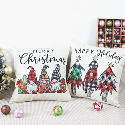 Weihnachtsdekor Kissenbezüge-Set mit 4 rot karierten und weihnachtlichen Sofakissenbezügen, lebendige Farben, klare Muster, d’accord verarbeitet, bringen Ihnen visuellen Belustigung und gute Urlaubsstimmung.