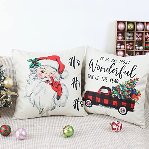 NIULAA 4 Stück Kissenbezug Weihnachten 50×50, Weihnachten Kissenbezug Dekokissen Couch Weihnachtsdeko Kissenhülle Weihnachtskissenbezug Leinen Sofa Kissen Weihnachten Couchkissen