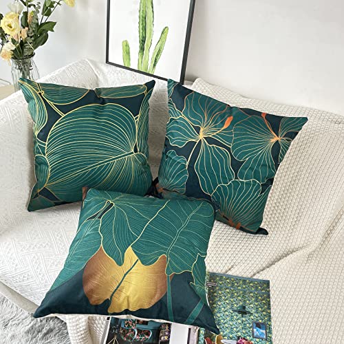 Kissenbezüge Dunkelgrün Pflanzen – Kissenbezug mit dunkelgrün gold muster gedruckt auf dem 4er Set feine Kuschelkissen, lebendige Farben, klare Muster, okay verarbeitet, bringen Ihnen visuellen Vergnügung und gute Laune.