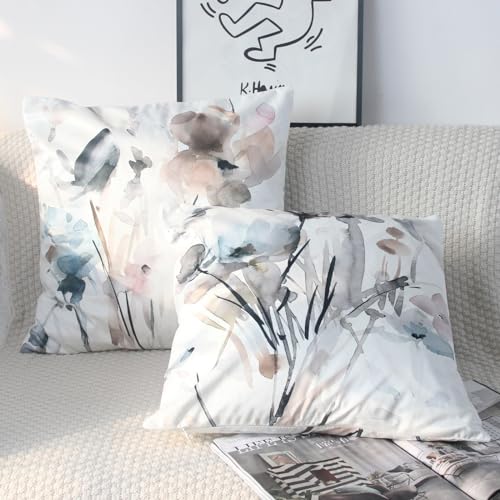 DESIGN:Deko kissen bezug abstrakte kunst gibt es in drei verschiedenen floral muster.Sommer deko die Retro-Eleganz der Tuschemalerei wird perfekt mit modernen Blumen kombiniert,Blumen kissenbez체ge die zur deko wohnzimmer des Raums verwendet werden geben Ihnen das Gef체hl,den Garten im Freien nach drinnen zu bringen,die Eindr체cke Ihrer G채ste zu degradieren.Ich bin mir zäh dass du viele Komplimente daf체r bekommen wirst.