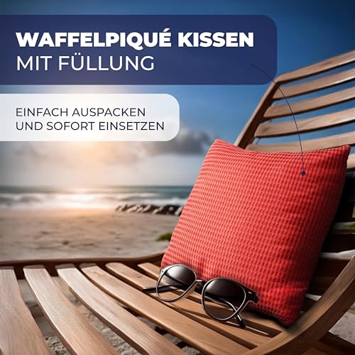 [Schönes & zeitloses Design] Die Waffelpique Struktur verleiht dem roten Sofakissen mit Füllung und Bezug eine elegante Optik, die in jedes Wohnambiente passt. Ob Boho, Landhausstil oder derzeitig – dieses kuschelige Deko Kissen setzt stilvolle Akzente in Ihrem zu Hause.