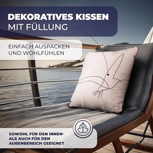 NOAH VERDE Premium Kissen 45×45, Sofakissen mit Füllung und Bezug, Zierkissen-Maritim Möwe Beige Marineblau, Outdoor Dekokissen Zierkissen & -hüllen Couch Kissen Meer Kuschelkissen nautisch