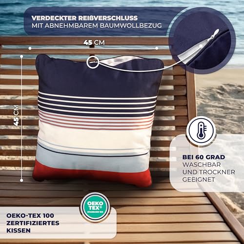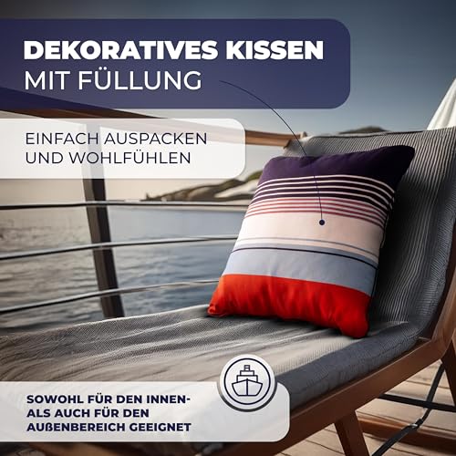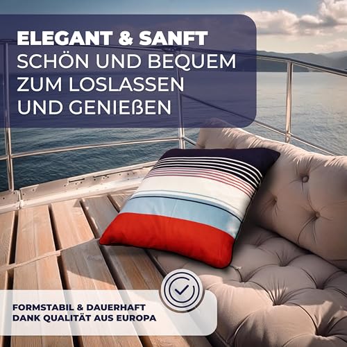 🛟 [Maritimes Ambiente] Unser 45×45 cm großes Sofakissen mit Füllung und Bezug im stilvollen nautischem Design bietet Ihnen als kuscheliges Polster optimalen Liegekomfort & bringt Ihnen Urlaubsgefühle direkt ins Wohnzimmer und nach Hause.