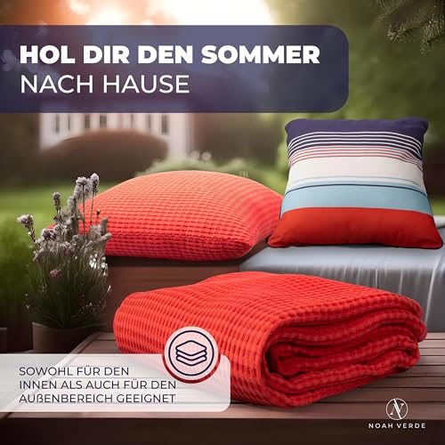 NOAH VERDE Premium Zierkissen-Maritim Streifen, Kissen 45×45 Marinelook: Blau Weiß Rot Türkis, Sofakissen mit Füllung und Bezug, Outdoor Kissen, Zierkissen & -hüllen Dekokissen nautisch gestreift