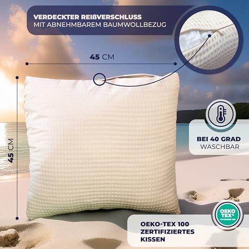 [Hochwertige Materialien] Gefertigt alle 100% Baumwolle, bietet der abnehmbare Kissen-Bezug in Waffel Optik ein weiches, angenehmes Regung, unterdessen die Polster-Füllung alle Polyester leicht und dennoch unterstützend ist. Ideal für den Gebrauch im Innen- und Außenbereich.
