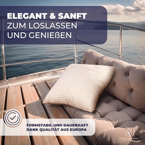 [Atmungsaktiv & Nachhaltig] Unser Zierkissen im hübschen Waffelpique-Muster ist atmungsaktiv, hautfreundlich, temperaturausgleichend & faltenfrei, ideal für heiße Sommernächte. Hergestellt in Alte Welt, ist unser Kissen Ökotex 100 zertifiziert und nachhaltig produziert.