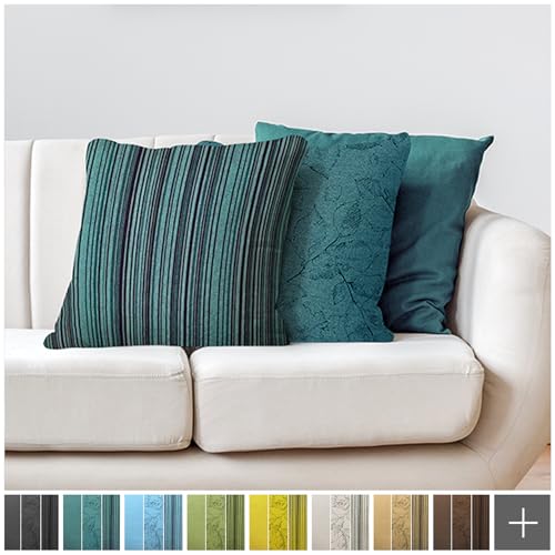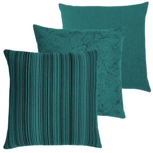 NOVELY® 3er-Set DEKOKISSEN Sofakissen Couchkissen Kissenbezug Füllung Zierkissen 40×40 cm Wohnzimmer Kissen Kissenhülle Farbe: 17 Petrol | Ausführung: nur Bezüge (ohne Füllung)