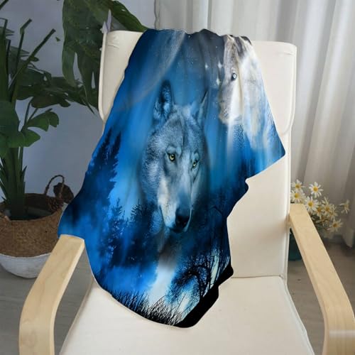 【Wolfsmuster Design】: Fühlbare Decke mit schönem Wolfsdruck auf einer Seite. Die kuschelige warme decke bietet eine bessere beständigkeit gegen verblassen und flecken qua baumwolldecken.