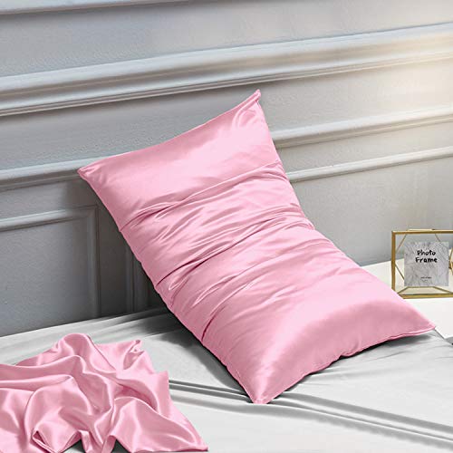 NTBAY 2er-Pack 40×80 cm Seidensatin-Kissenbezüge für Haar und Haut, luxuriöse und seidige Standard-Kissenbezüge mit Hotelverschluss, Rosa