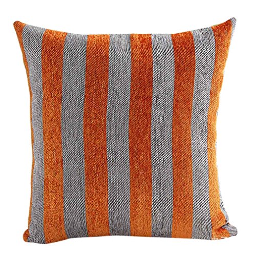 Nunubee Nordischen Stil Gestreifte Chenille Sofakissen Kissenbezüge Kissenhülle Dekokissen Kissenbezug, 45 * 45cm Grau und Orange