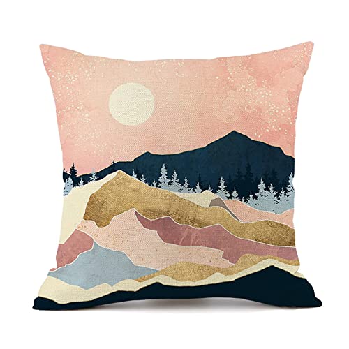Mehrfachnutzung: Muster Fassung-design von abstrakt rosa berg wald, art sonne monde, der schön modern natur kissenbezug ist perfekt, um Ihr Büro, Yoga-Zimmer, Zuhause, Küche, Schlafzimmer, Wohnzimmer, Garten, Bett, Couch, Home sofa, Auto, Gartenmöbel, im Innen- und Außenbereich zu dekorieren. Schafft eine frische, warme Atmosphäre.
