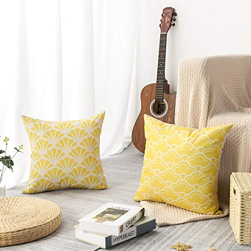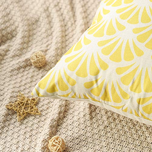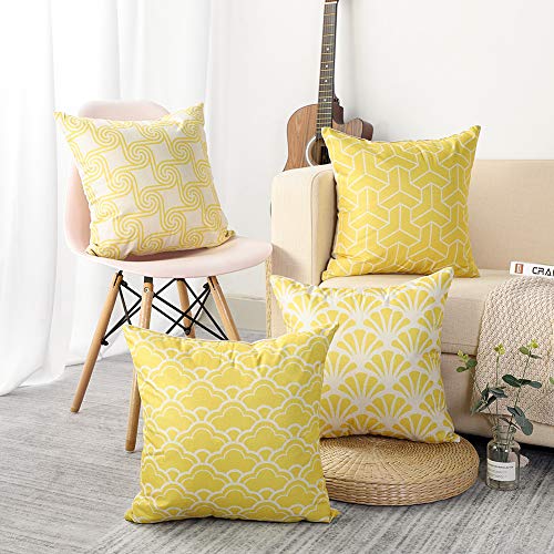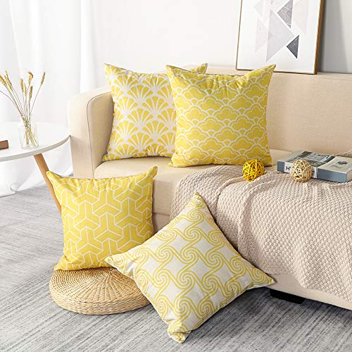 Ohok 4er Set Dekorativ Kissenbezug mit Motiv, Polyester Leinen Zierkissenbezüge 45×45 cm, Modern Dekokissen Sofakissen Kissenhülle Set für Sofa Couch Wohnzimmer Schlafzimmer (Geometrisch Gelb)
