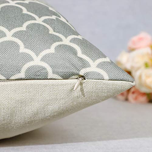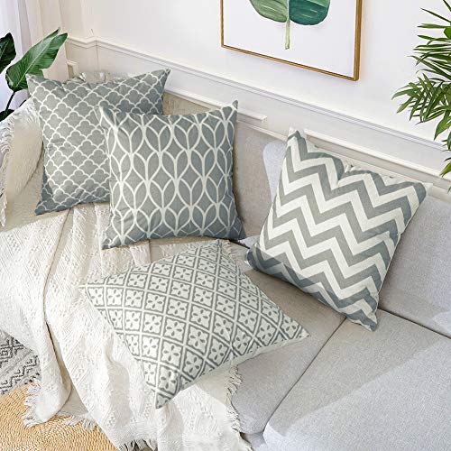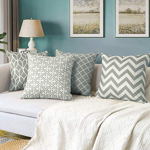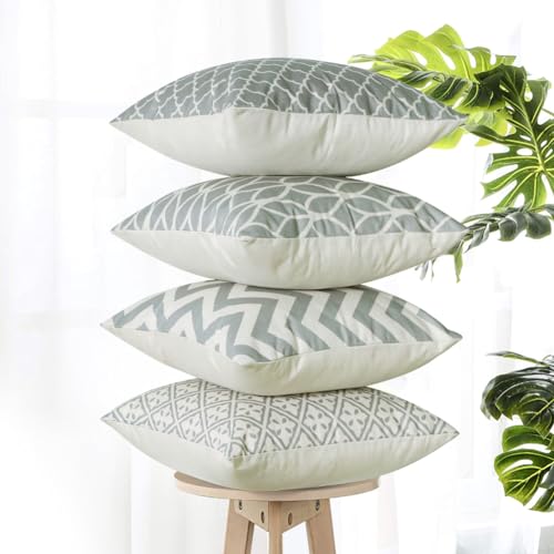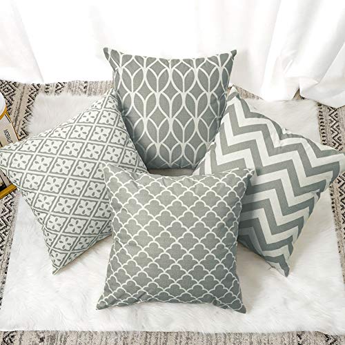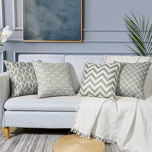 Ohok 4er Set Dekorativ Kissenbezug mit Motiv, Polyester Leinen Zierkissenbezüge 45×45 cm, Modern Dekokissen Sofakissen Kissenhülle Set für Sofa Couch Wohnzimmer Schlafzimmer (Geometrisch Grau)