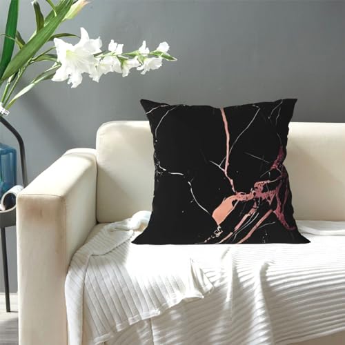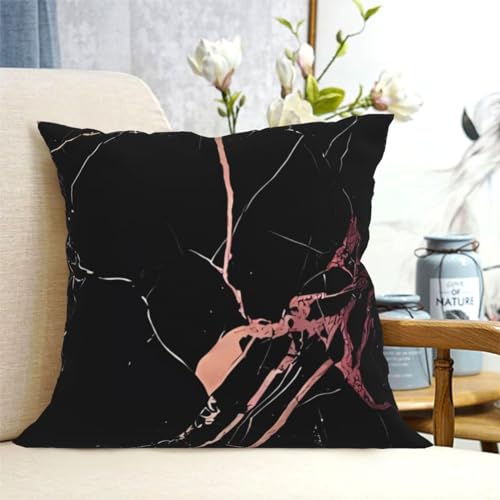 Hochwertiges Material: Der schwarze, rotgoldene Marmor-Kissenbezug ist aus hochwertigem Polyester mit feinen Nähten. So ist es schwer zu brechen oder zu verblassen; es ist weich und hautfreundlich, und das Muster ist auf beiden Seiten bedruckt. Verleiht jedem Raum Raffinesse und Luxus.