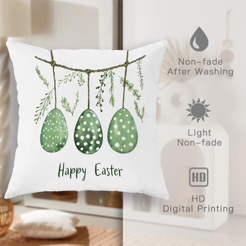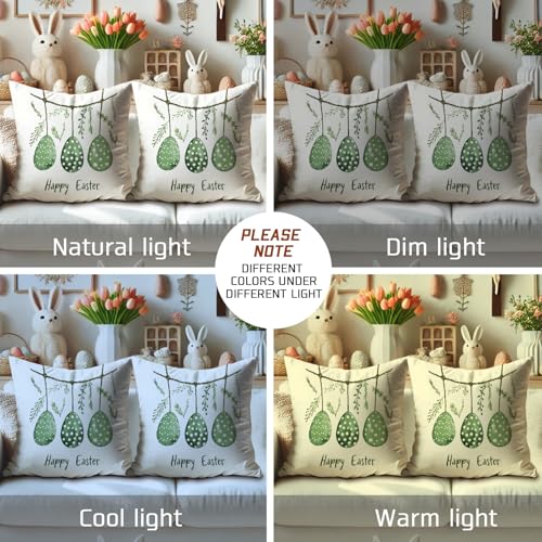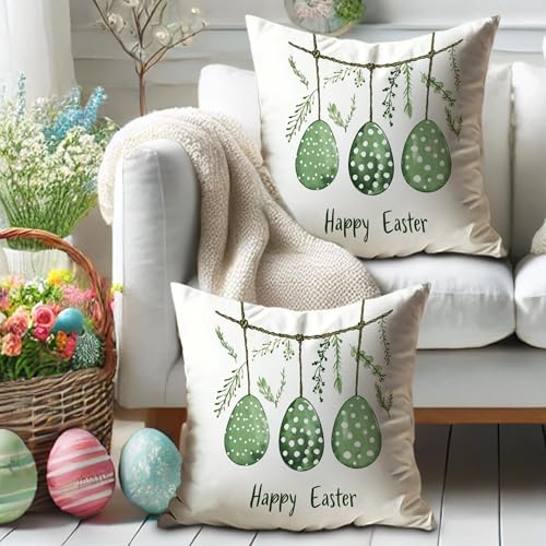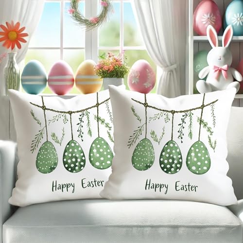 Oster-Kissenbezüge, 2er-Set, grüne gepunktete Ei, dekorative Dekokissen, Bauernhaus-Frühlings-Heimdekoration statt dessen Sofa, Couch, Bett, 40,6 x 40,6 cm