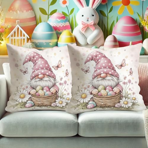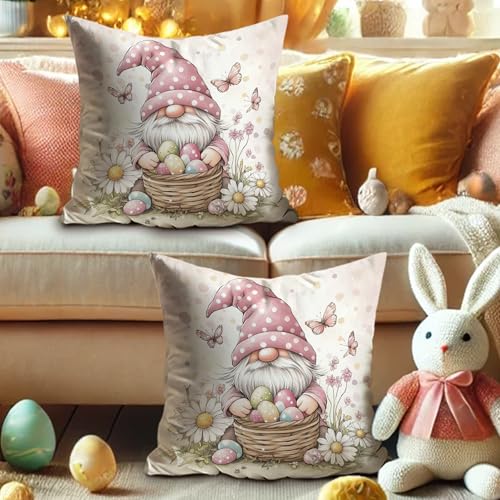Oster-Zwerg-Kissenbezüge, 2er-Set, Pfirsichfarben, gepunktet, saisonale Dekokissen, Frühlingsdekor, quadratisch, Heimdekoration, Kissenbezüge statt Sofa, Couch, Bett, 40,6 x 40,6 cm
