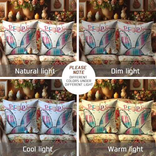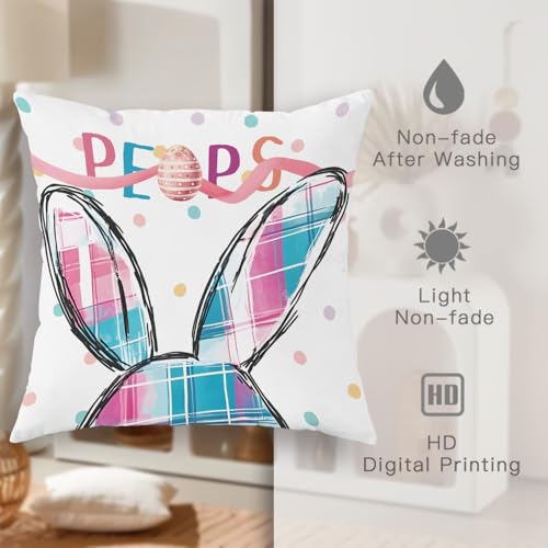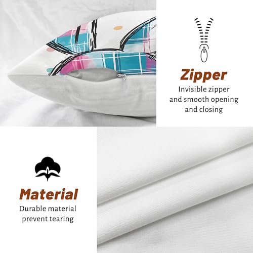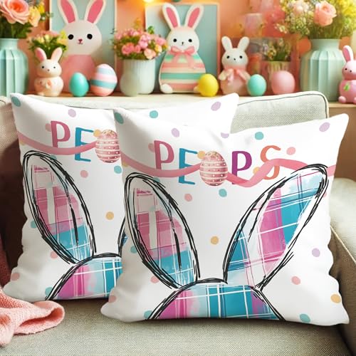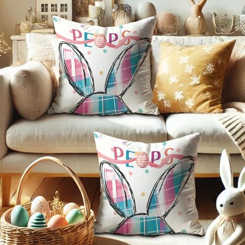 Osterhasen-Kissenbezüge, 2er-Set, pastellfarben, pfirsichfarben und hacke, kariert, dekorative Dekokissen, Frühlingsdekoration, Heimdekoration, zugunsten Sofa, Couch, Bett, 50,8 x 50,8 cm