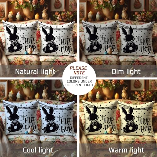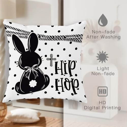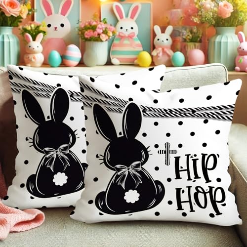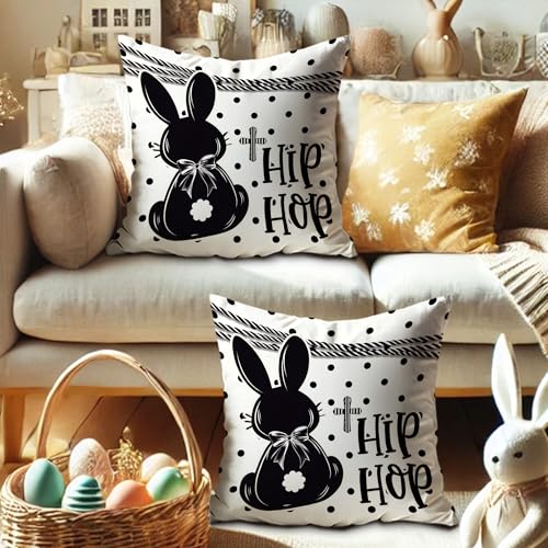 Osterhasen-Kissenbezüge, 2er-Set, schwarz-weiß gepunktet, dekorative Dekokissen, Frühlingsdekoration, rustikale Dekoration statt dessen Zuhause, Couch, Bett, 50,8 x 50,8 cm