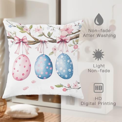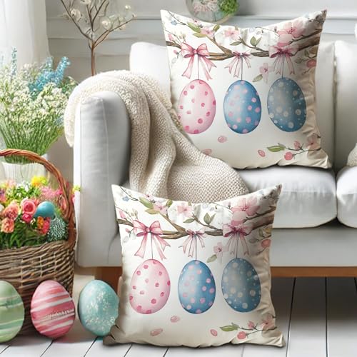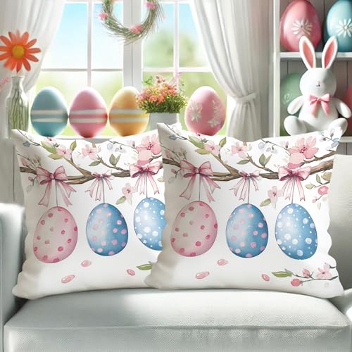 Ostern-Kissenbezüge, 2er-Set, pfirsichfarben und trunken gepunktet, dekorative Dekokissen, Frühlings-Urlaub, Bauernhaus-Dekoration für Wohnzimmer, Sofa, Couch, 40,6 x 40,6 cm