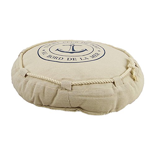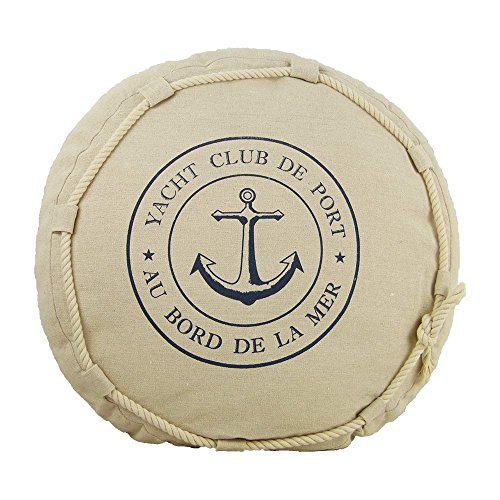 weiches und anschmiegsames Kuschel- und Zierkissen in der neutralen Farne beige mit blauem Aufdruck (Schriftzug und Abspannung). Das Kissen hat zudem eine maritime Kordel auf der Vorderseite, die Abseite ist ganz schlicht/ uni