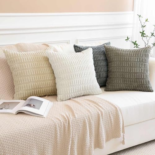 OTOSTAR Dekokissenbezüge, weich, gestreift, Cord, dekorativ, für Zuhause, Sofa, Schlafzimmer, Wohnzimmer, 4 Teil