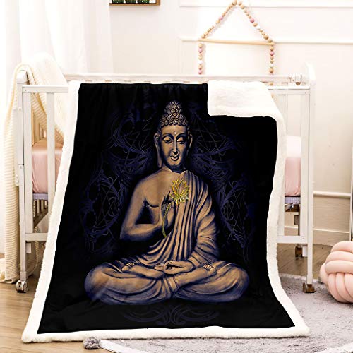 OUSIKA Kuscheldecke Flauschig Decke Flanell Fleecedecke 3D Buddha Druck Weich Deckeldecke Wohndecke Für Bett Sofa Schlafzimmer 150x200Cm Sofadecke Tagesdecke Weiche Plüsch Decke Blanket