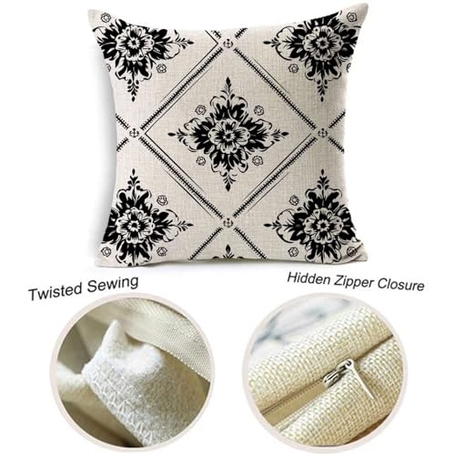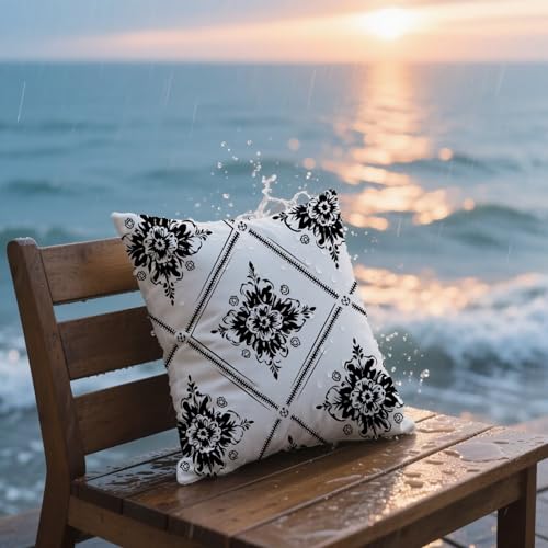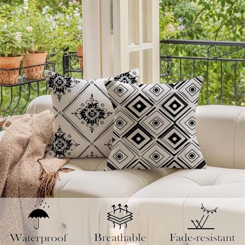 Outdoor Kissen 35×35 cm, Kissenbezug Schwarz Sitzkissen Outdoor Wetterfest Kissenbezüge Geometrie, Leinen Sofakissen Dekokissen Kopfkissenbezug, Fall Sommer Deko für Wohnzimmer Terrasse 2er Set Q-4578