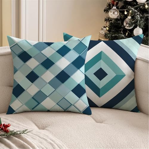 【HOCHWERTIGES WASSERDICHTES LEINEN】 Kissenbezug 55x55cm. Vorder- und Abseite der Kissen Blau bestehen aus hochwertigem, wasserdichtem Leinen. Mit den gemusterten Dekokissen können Sie die Sofadekoration schnell berichtigen und Ihr Zimmer auffrischen (ohne Kissenkern)