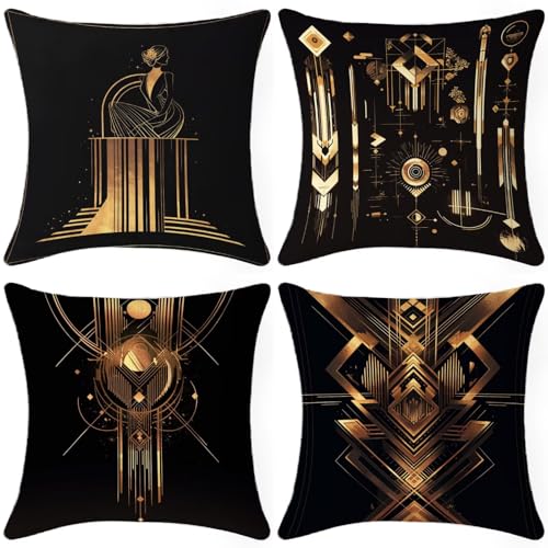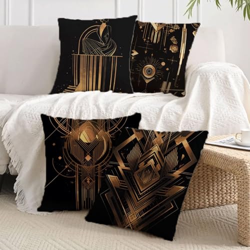 Outdoor Kissen Einfachheit Kissenbezug 80x80cm Abstrakt, 4er Set Outdoor Kissen Wetterfest mit ReißVerschluss Dekokissen Samt Kissenhülle für Sofa Schlafzimmer Wohnzimmer Terrassen Balkon Deko H3-4