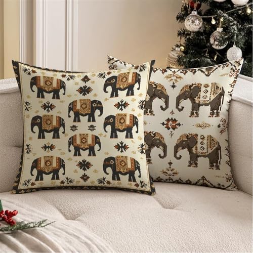 【HOCHWERTIGES WASSERDICHTES LEINEN】 Kissenbezug 55x55cm. Vorder- und Abseite der Kissen Elefant bestehen aus hochwertigem, wasserdichtem Leinen. Mit den gemusterten Dekokissen können Sie die Sofadekoration schnell austauschen und Ihr Zimmer auffrischen (ohne Kissenkern)