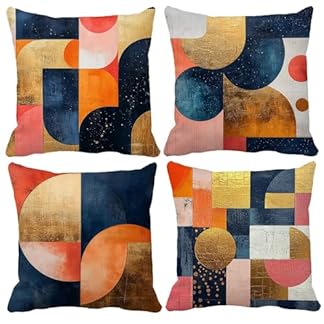 【HOCHWERTIGES WASSERDICHTES LEINEN】 Kissenbezug 60x60cm. Vorder- und Abseite der Kissen Geometrie bestehen aus hochwertigem, wasserdichtem Leinen. Mit den gemusterten Dekokissen können Sie die Sofadekoration schnell bessern und Ihr Zimmer auffrischen (ohne Kissenkern)