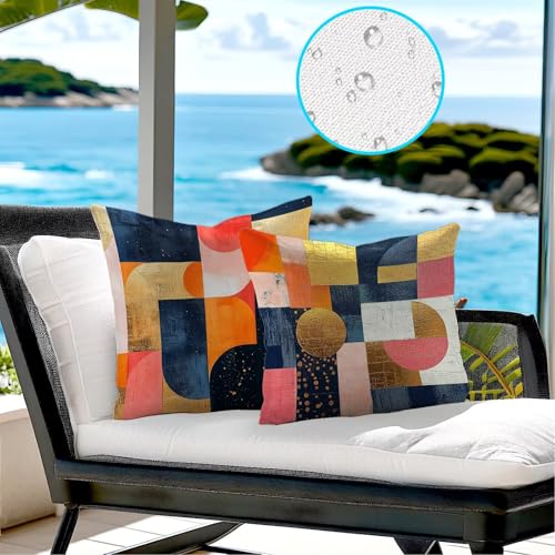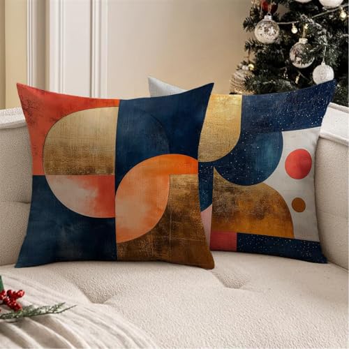 【HOCHWERTIGES WASSERDICHTES LEINEN】 Kissenbezug 80x80cm. Vorder- und Abseite der Kissen Geometrie bestehen aus hochwertigem, wasserdichtem Leinen. Mit den gemusterten Dekokissen können Sie die Sofadekoration schnell abändern und Ihr Zimmer auffrischen (ohne Kissenkern)
