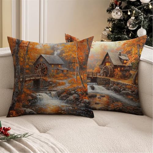 【HOCHWERTIGES WASSERDICHTES LEINEN】 Kissenbezug 50x50cm. Vorder- und Abseite der Kissen Herbst bestehen aus hochwertigem, wasserdichtem Leinen. Mit den gemusterten Dekokissen können Sie die Sofadekoration schnell austauschen und Ihr Zimmer auffrischen (ohne Kissenkern)