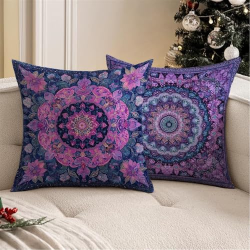 【HOCHWERTIGES WASSERDICHTES LEINEN】 Kissenbezug 45x45cm. Vorder- und Abseite der Kissen Lila bestehen aus hochwertigem, wasserdichtem Leinen. Mit den gemusterten Dekokissen können Sie die Sofadekoration schnell eintauschen und Ihr Zimmer auffrischen (ohne Kissenkern)