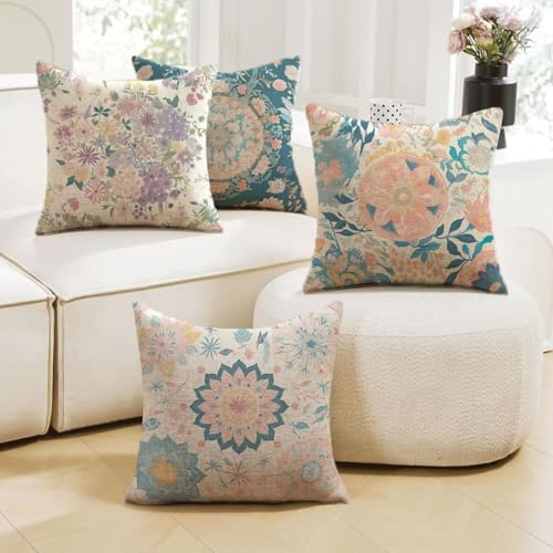 【OUTDOOR CUSHION COVER FEATURES AND USES】Double-sided printed square cushion covers feature a discreet concealed zip.Works smoothly, allowing easy removing and cleaning. This beautiful cozy throw pillow covers for home decors, living room, bedroom, couch, or sofa, Brings elegant look to your home space and easy to refresh your old couch pillwos. for patio decor, lawn, garden, outdoor, porch, ect. You can also give it to friends or family thoughtful gift for birthdays.