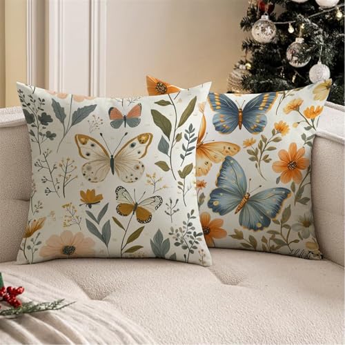 【HOCHWERTIGES WASSERDICHTES LEINEN】 Kissenbezug 60x60cm. Vorder- und Abseite der Kissen Schmetterling bestehen aus hochwertigem, wasserdichtem Leinen. Mit den gemusterten Dekokissen können Sie die Sofadekoration schnell berichtigen und Ihr Zimmer auffrischen (ohne Kissenkern)