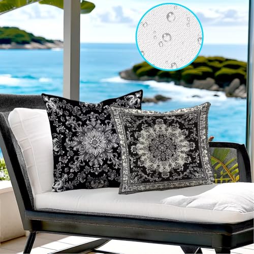 【HOCHWERTIGES WASSERDICHTES LEINEN】 Kissenbezug 60x60cm. Vorder- und Abseite der Kissen Schwarz bestehen aus hochwertigem, wasserdichtem Leinen. Mit den gemusterten Dekokissen können Sie die Sofadekoration schnell austauschen und Ihr Zimmer auffrischen (ohne Kissenkern)