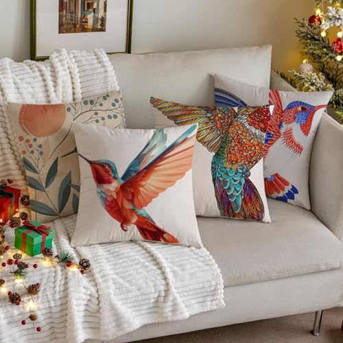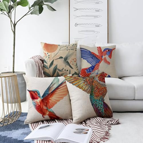 Outdoor Kissen Tier Kissenbezug 60x60cm Vogel 4er Set, Outdoor Kissen Wetterfest Leinen Dekokissen mit Unsichtbarem Reißverschluss für Sofa Schlafzimmer Wohnzimmer Terrasse Balkon Deko, Geschenk U0-1