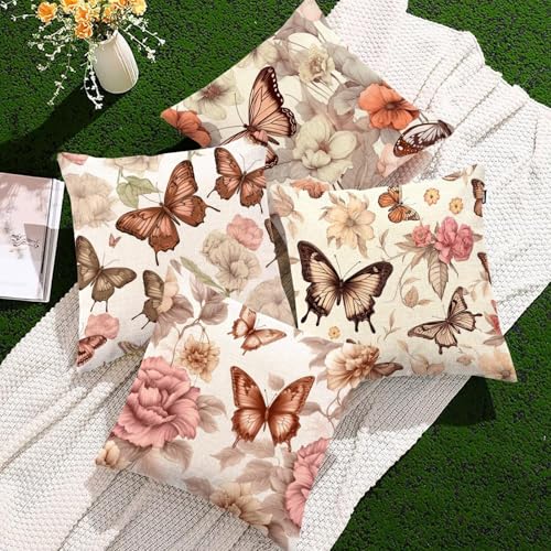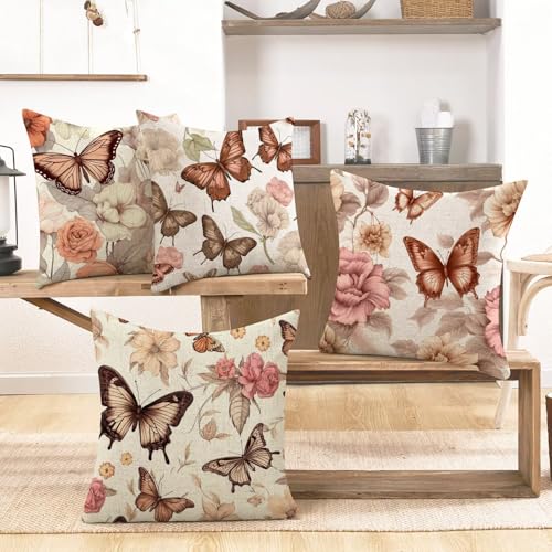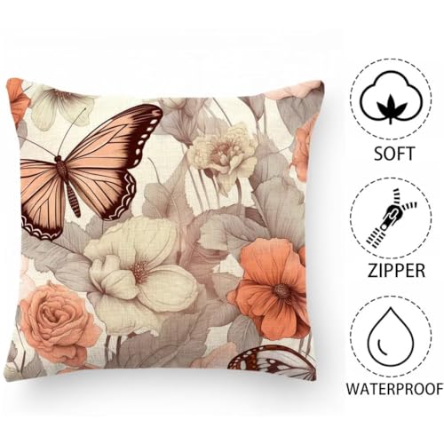 Outdoor Kissen Wasserdichter Kissenbezug 60×60 cm, 4er Set Braun Dekokissen Weich Kissenhülle Kissen Schmetterling Kissenbezüge Quadrat Zierkissenbezüge für Outdoor Couch Terrassen Deko Balkon f311