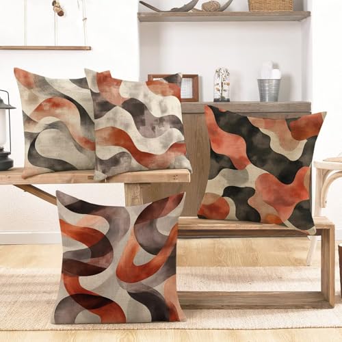 Outdoor Kissen Wasserdichter Kissenbezug 80×80 cm, 4er Set Braun Dekokissen Weich Kissenhülle Sofa Kissen Braun Kissenbezüge Quadrat Zierkissenbezüge für Couch Terrassen Deko Gartenmöbel Balkon f312