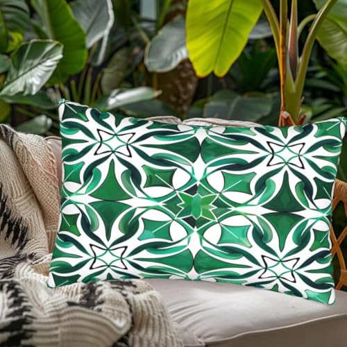 Outdoor Kissen Wetterfest 2 Stück Dekokissen Gartenkissen, Wetterfest Outdoor Kissenbezüge 40×60 cm, Rechteckig Outdoorkissen Lendenkissen Zierkissenbezüge für Garten Patio Balkon (Grün Indien) -J62