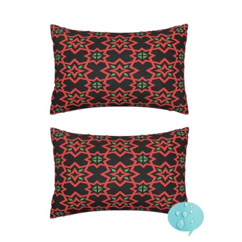 Outdoor Kissen Wetterfest 2 Stück Dekokissen Gartenkissen, Wetterfest Outdoor Kissenbezüge 60×90 cm, Rechteckig Outdoorkissen Lendenkissen Zierkissenbezüge für Garten Patio Balkon (Rot Truthahn) -J59