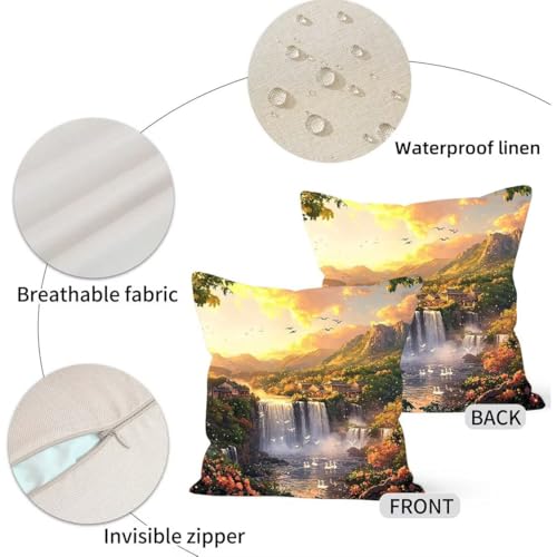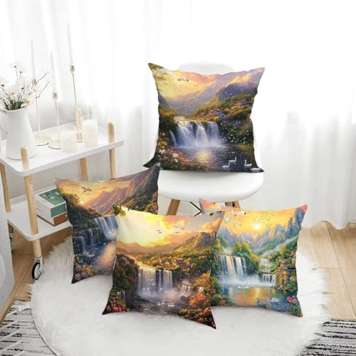 Outdoor Kissen Wetterfest Kissenbezüge 30×30 cm Gartenmöbel Kissenbezug Wasserfall Landschaft Dekokissen Herbst Sofakissen Kissenhülle aus Polyster für Garten Sofa Wohnzimmer Bett Dekor 4er Set g-389