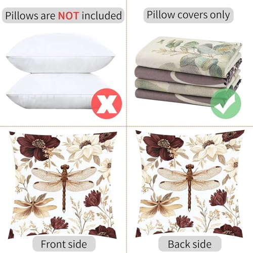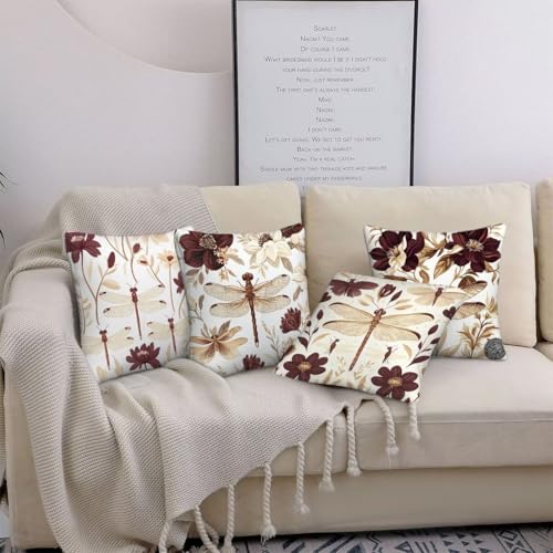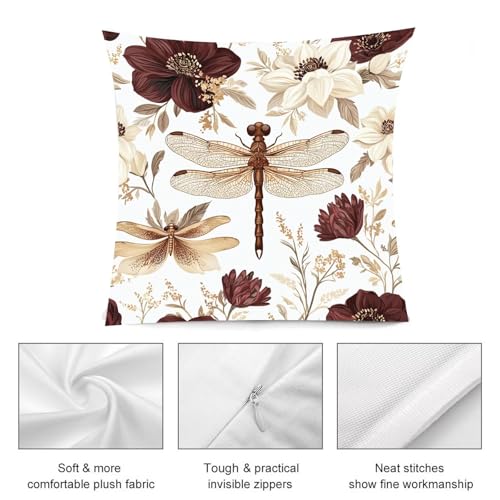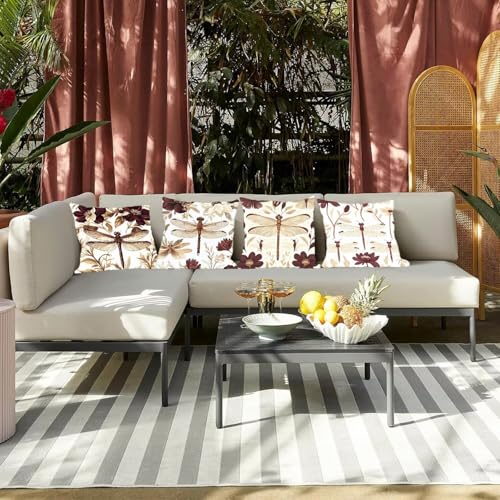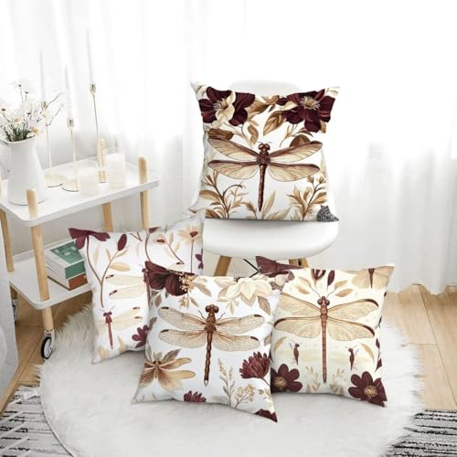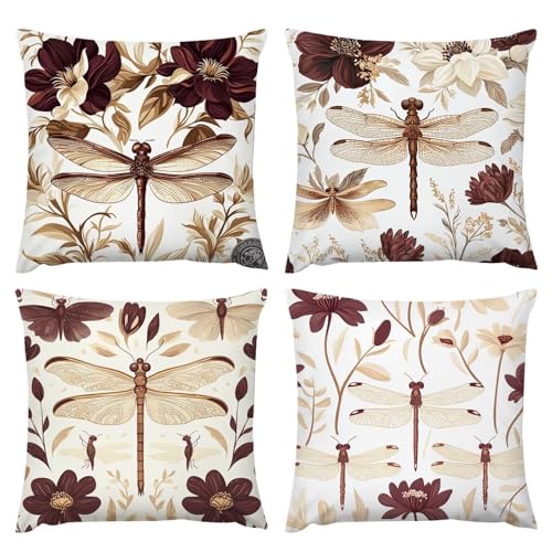 Outdoor Kissen Wetterfest Kissenbezüge 40×40 cm Gartenmöbel Kissenbezug Libelle Blumen Dekokissen Herbst Sofakissen Kissenhülle aus Polyster für Garten Sofa Wohnzimmer Bett Dekorative 4er Set g-394