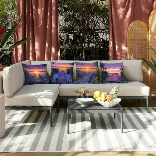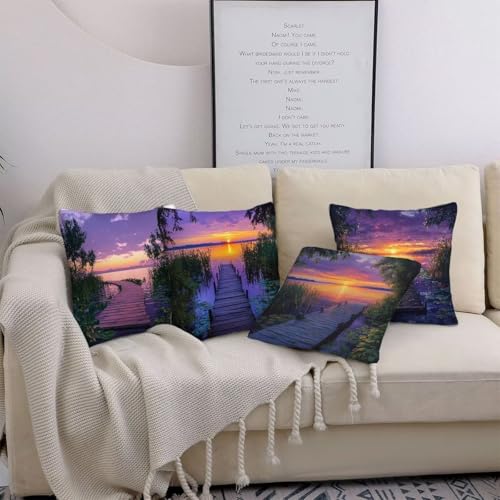 Outdoor Kissen Wetterfest Kissenbezüge 70×70 cm Gartenmöbel Kissenbezug Bridge Lake Dekokissen Herbst Sofakissen Kissenhülle aus Polyster für Garten Sofa Wohnzimmer Bett Dekorative 4er Set g-392