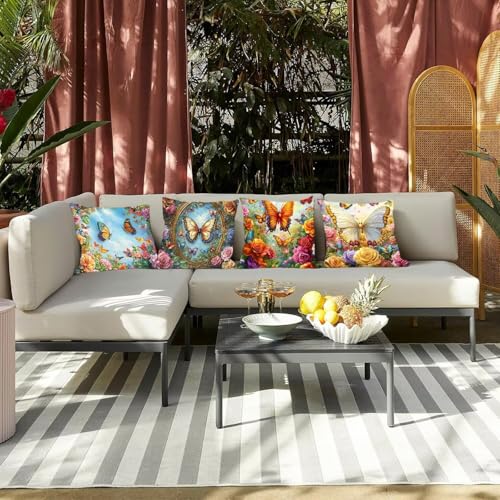 【PERFEKTES GESCHENK UND DEKORATION】: Fügen Sie das Set der 4-Wurf Kissenbezüge noch heute zu Ihrer Wohnkultur hinzu und verwandeln Sie Ihren Wohnraum in eine Oase des Komforts und Stils. Sie sind die perfekte Wohndekoration, geeignet für den Garten, Hof, Wohnzimmer, Büro, Café Balkon und fügen einen eleganten Look zu jedem Raum