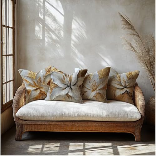 【OUTDOOR KISSEN WETTERFEST】 Das Paket enthält 4 Kissenbezüge. Hergestellt aus strapazierfähigem Leinen, robust, atmungsaktiv und bequem, mit hoher Wasserbeständigkeit