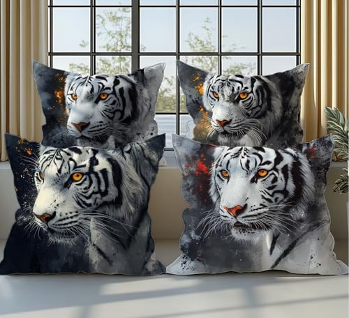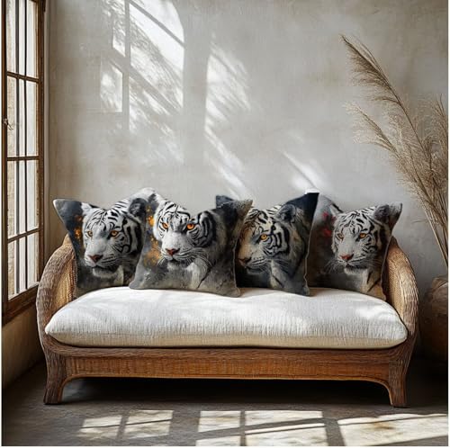 Outdoor Kissen Wetterfest Kissenbezug Wasserfest Sofakissen Wasserdicht Dekokissen 50x50cm Kissenhüllen Tier Kissenbezüge Tiger Muster Design Zierkissen Outdoor Deko Aesthetic, Geschenke für Frauen