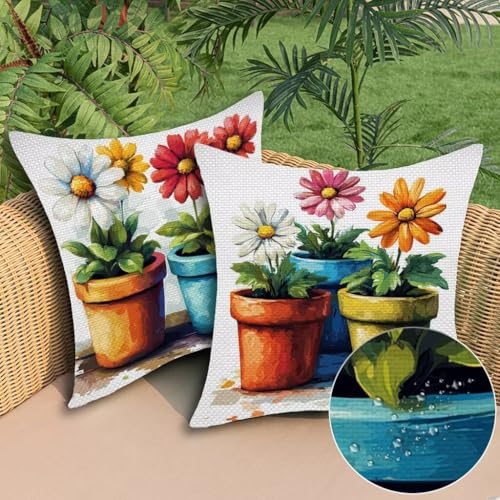 【HOCHWERTIGE MATERIALIEN】: Die Kissenbezüge bestehen aus Leinenstoff – natürlich, atmungsaktiv und langlebig. Mit einer wasserabweisenden Beschichtung sind sie leicht zu reinigen und ideal für den Außen-/Gartenbereich